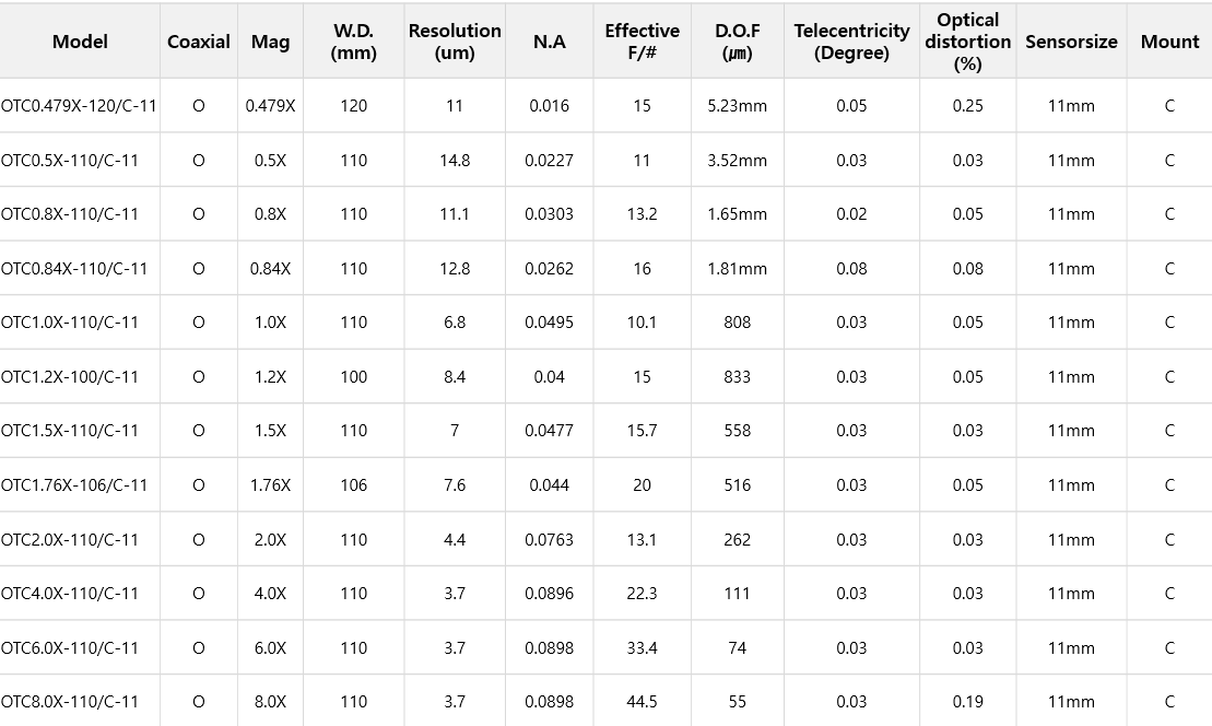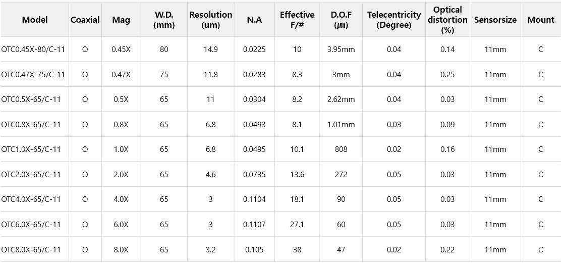 - 배율 별 및 W.D. 별 다수의 제품을 제작하고 있습니다.