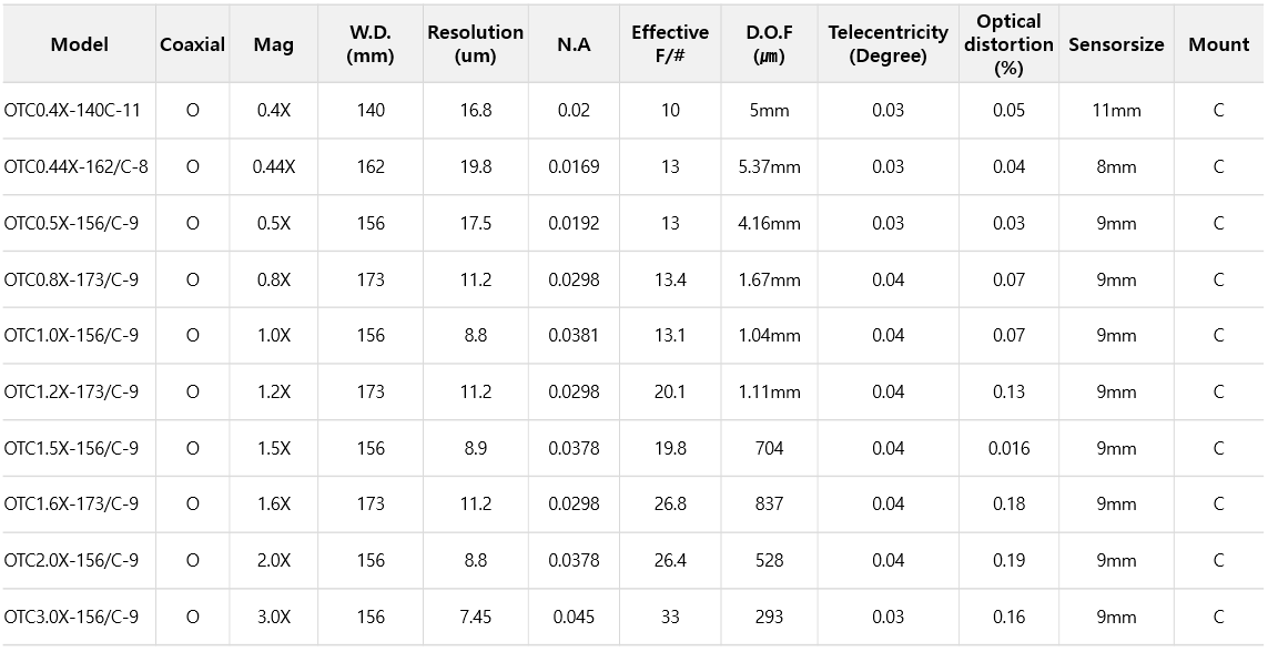 - W.D가 길어져도 높은 Resolution으로 정밀한 Detect 검사가 가능하며 렌즈 밝기가 우수