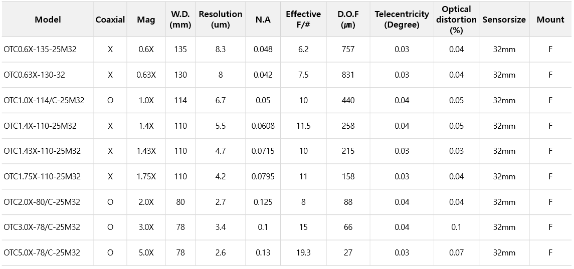 - 배율 및 W.D 별 다수의 제품을 제작